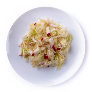 Капуста белокачанная, стебиль сельдерея, яблоко, масло растительное, соль, сахар, уксус.